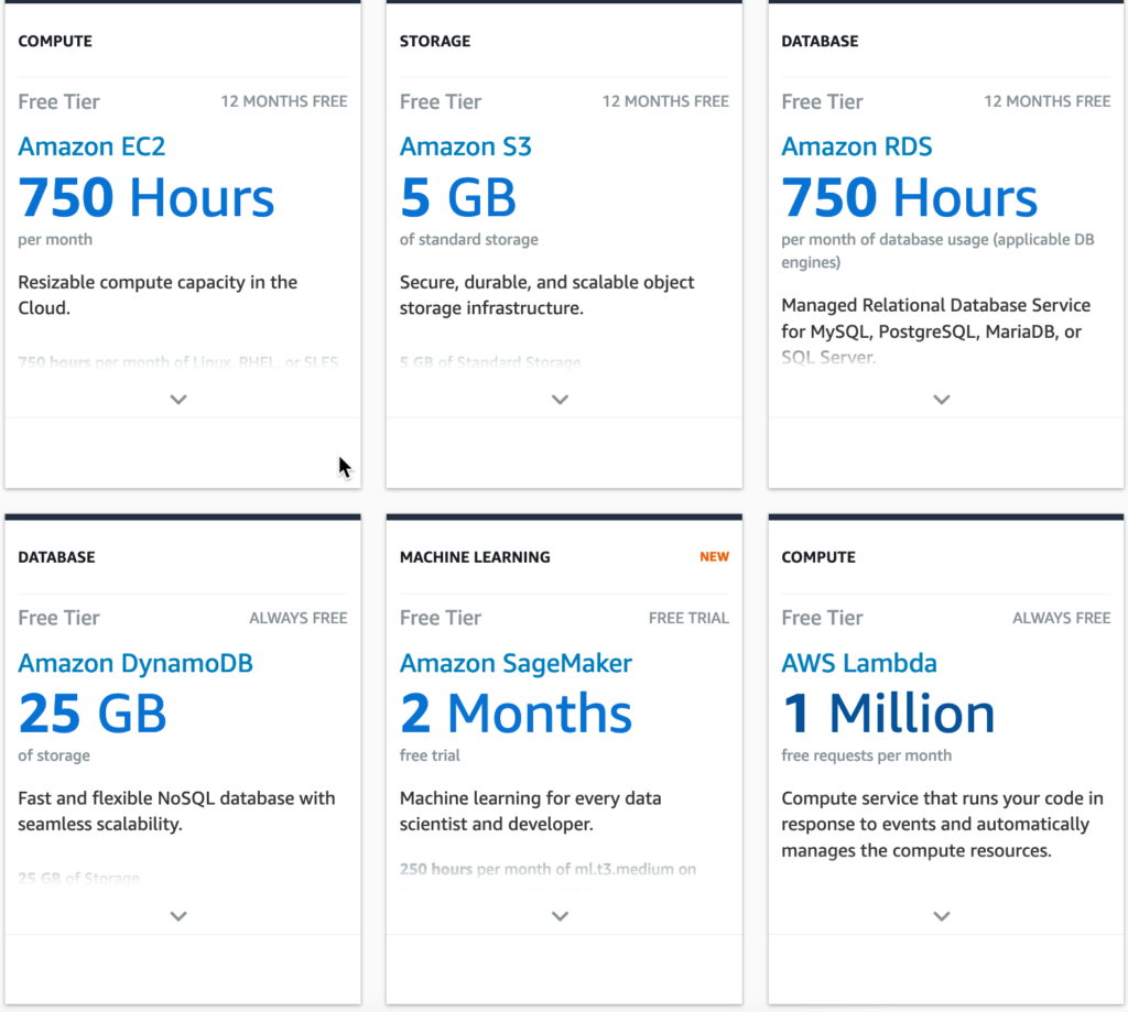 As you can tell, things get a little complicated with Free Tier. You can use this handy tool to apply filters for each of the three categories (12 month free, trial, always free) to see what qualifies for what category.