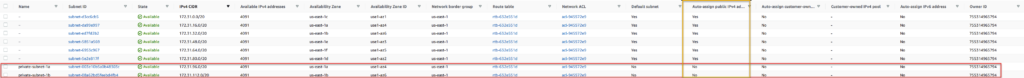 When creating our subnets via the wizard, our subnets automatically are set to not assign a public ip address when an infrastructure components is created within the subnet. You can see this in the large image below highlighted in yellow.