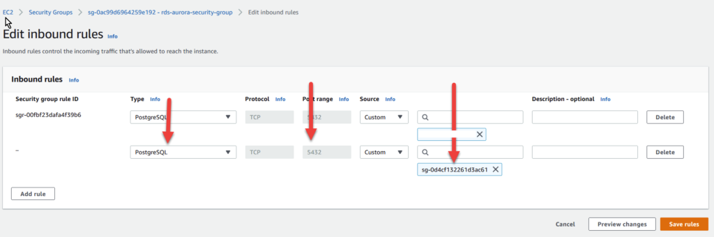 Step 9 – Allow Aurora Security Group Inbound Connections From Jump Box