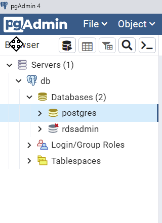 After clicking Save, you should now see your database listedon the left hand side of pgAdmin like you see below.