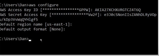 - Run the command “aws configure” in your command prompt.